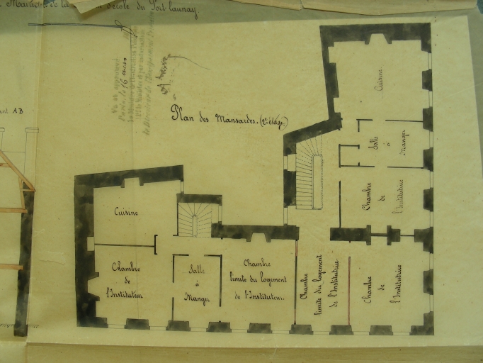 Première mairie-école (projet). Plan des combles, 1875 (Archives départementales du Finistère, 2 O 1538)Immatriculation