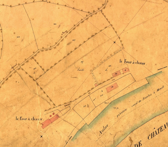 L'emplacement des fours à chaux sur le cadastre de 1847 (Archives départementales du Finistère, 3 P 224)Immatriculation