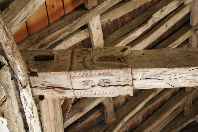 Intérieur : bras nord, charpente, poutre à engoûlant.Immatriculation