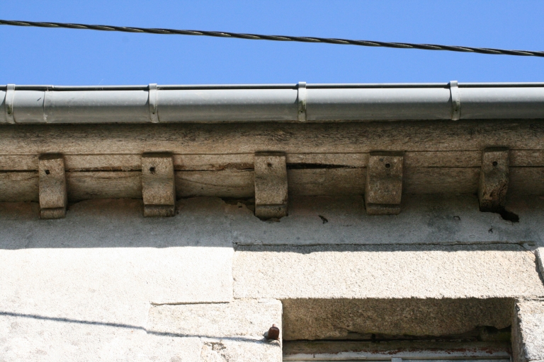 Resterlan. Logis est daté 1765, détail de la corniche en boisImmatriculation