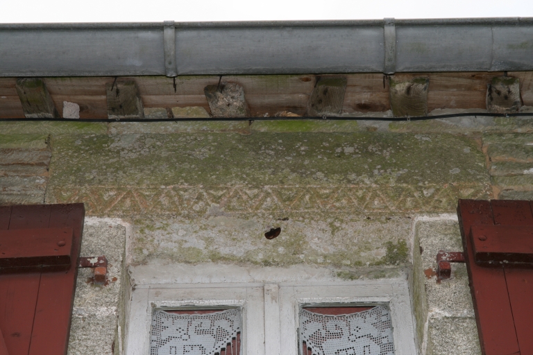 Détail du linteau de la fenêtre centrale de l'étage à décor géométriqueImmatriculation
