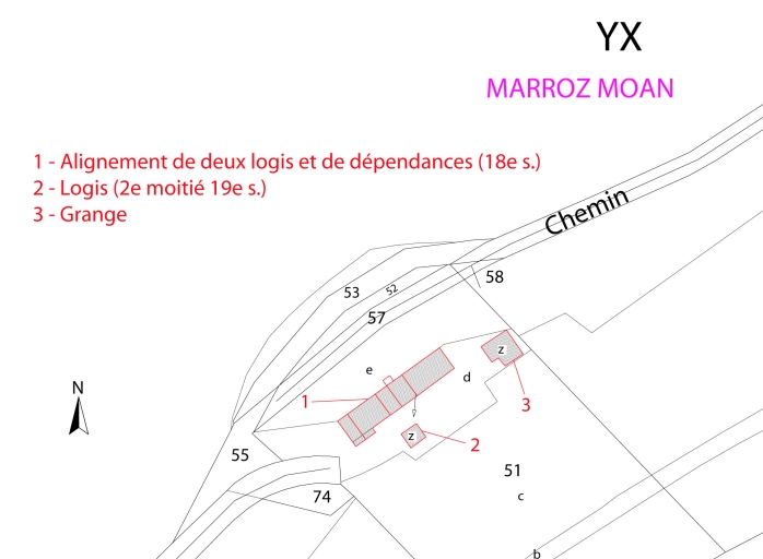 Localisation des éléments sélectionnés sur le cadastre actuel, section Y XImmatriculation