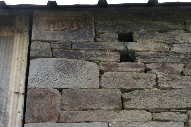 Grange, détail d'une pierre d'encadrement de la fenêtre du comble datée 1795Immatriculation