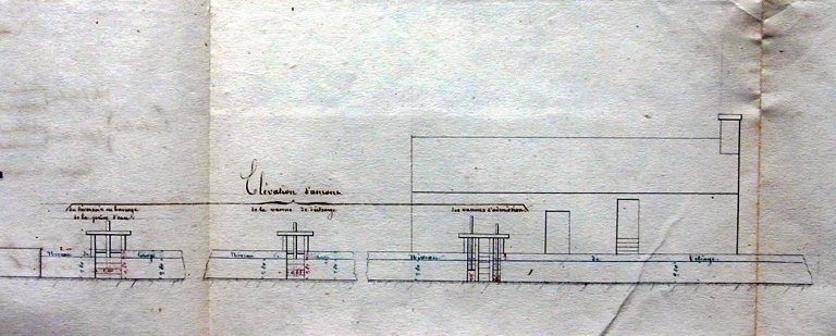 Coupe de 1837 d'un moulin et de ses abords sur le ruisseau de Ster-ar-Choat construit sans autorisation et dont le propriétaire, Michel Tranvoëz, demande sa régularisation (A. D. Finistère, 7 S 82)Immatriculation