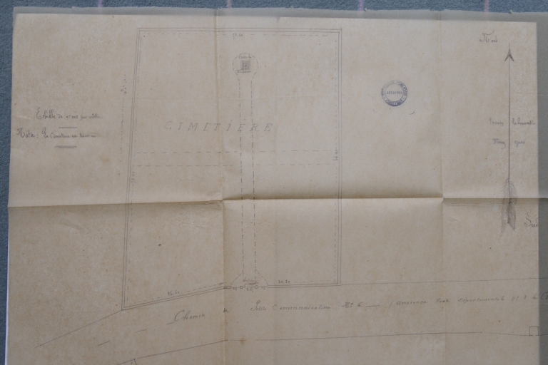 Plan du cimetière avec l'emplacement de la croix de mission, 1875 (A. D. Finistère, 2 O 1122)Immatriculation
