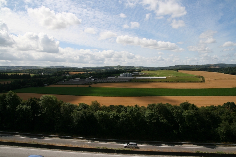 Vue depuis Ker Izella sur la Nationale N 164 et sur une exploitation agricole industrielle de LotheyImmatriculation