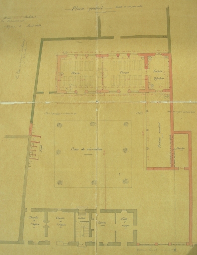 Plan de l'école de garçons, 1884Immatriculation