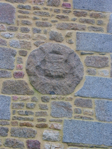 Détail d'anciennes armoiries, clocher.Immatriculation