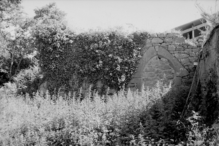 Trégrom, Poulgouénan : porte en arc brisé surbaissé d'un édifice ruiniforme, photographie de 1972Immatriculation