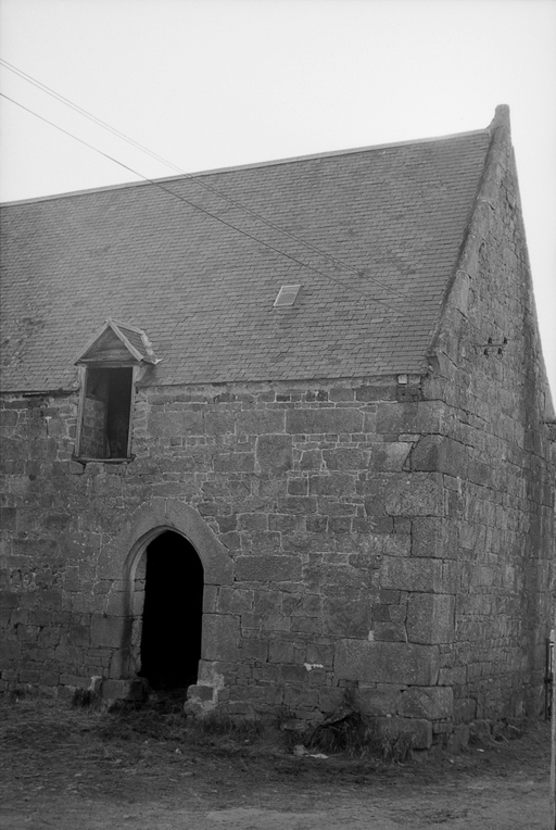 Trégrom, le bourg, ferme de Pen an Guer : porte en arc brisé surbaissé d'une grange du 17e siècle, photographie de 1972Immatriculation