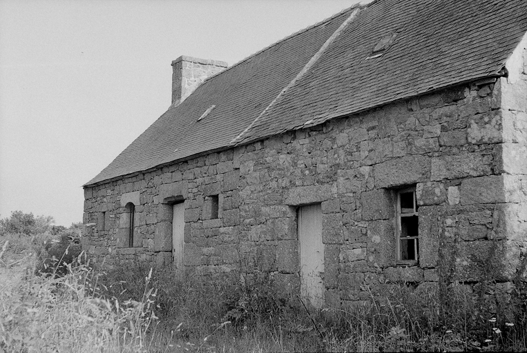 Trégrom, Kerstun : alignement de 2 logis, photographie de 1972 (édifice non recensé en 2010). Le piédroit du logis de gauche porte une inscription illisibleImmatriculation