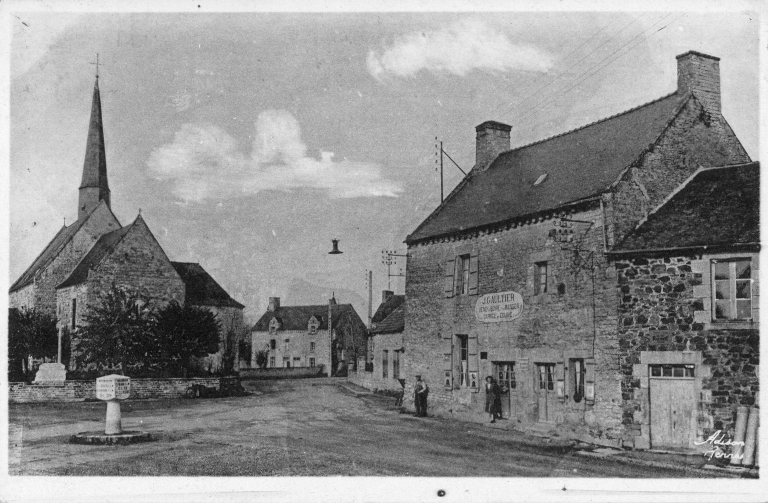 (L'église et le centre bourg], carte postale, vers 1960, Rennes : Adison. (Coll. P. Marqué).Immatriculation