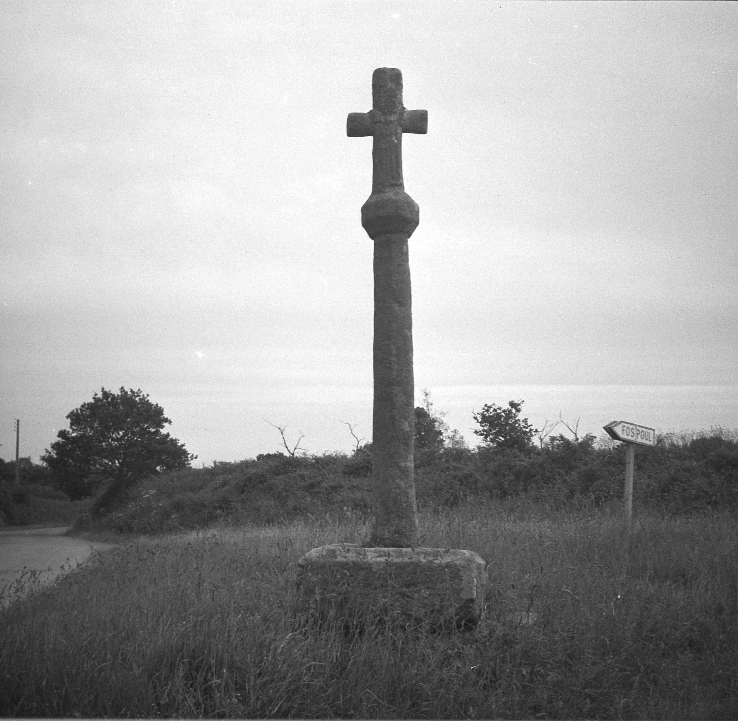 Kermaria-Sulard, Fospoul : croix de chemin (face orientée vers le nord-ouest, saint évêque), ancienne photographie (1969-1975)Immatriculation