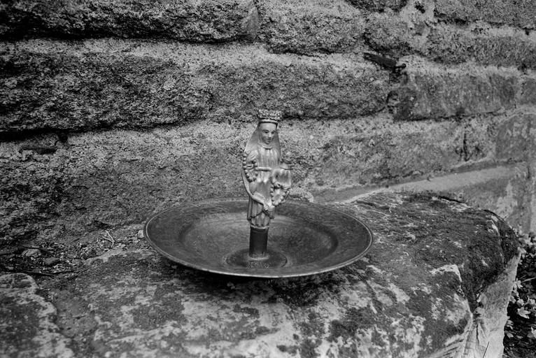Lanvellec, le bourg, 1 place de l'église : presbytère puis maison, statue, chandelier, photographie de 1974Immatriculation