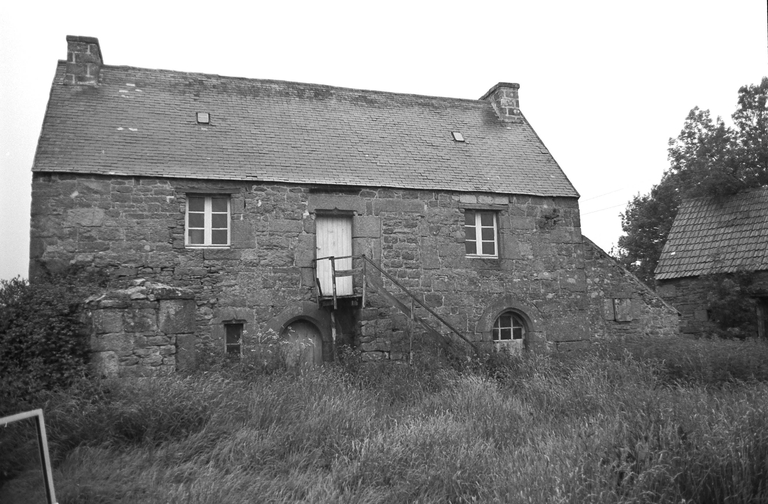 Lanvellec, Convenant Cam (Cam Lez Elaouen) : ferme, photographie de 1974. Un escalier extérieur en pierre permet l'accès à l'étage carréImmatriculation