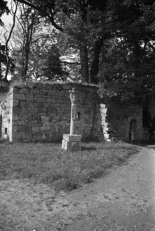 Vue des vestiges de la chapelle située au nord du château et son calvaire, photographie de 1974Immatriculation