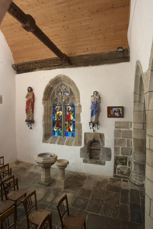 Plougras, le bourg : vue intérieure de l'église paroissiale Saint-Pierre, transept nordImmatriculation