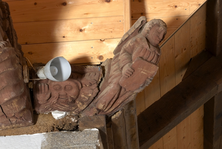 Plougras, le bourg : vue intérieure de l'église paroissiale Saint-Pierre, chapelle sud, blochetImmatriculation