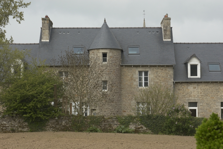 Loguivy-Plougras, route de le Dresnay : ancienne école privée catholique dite école de I'immaculée Conception, vue est, facade postérieure dotée d'une tourelle d'escalierImmatriculation