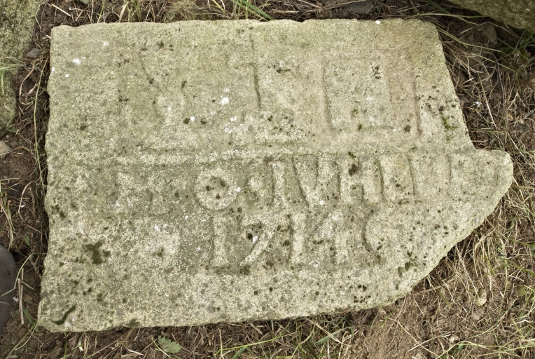 Pierre déposée portant insignes de la prêtrise et la date de 1714Immatriculation