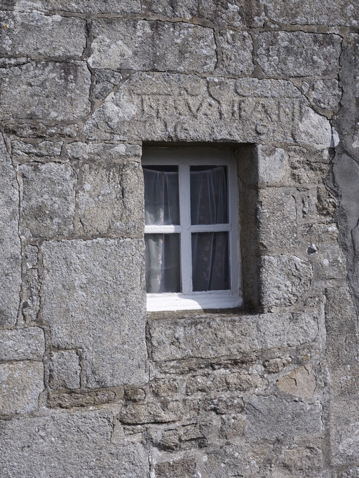 Loguivy-Plougras, Saint-Divy : ancien presbytère dit maison Lejeune, vue du linteau daté 1690Immatriculation