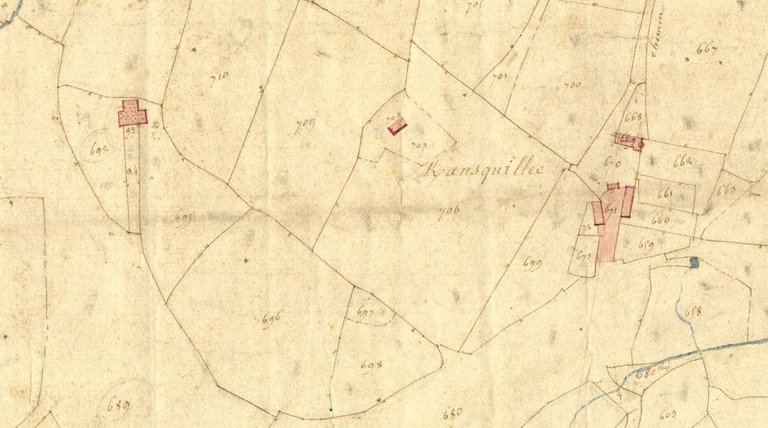 Extrait de la feuille C2 du cadastre ancien de la commune de Trégrom, 1834 : KeransquillecImmatriculation