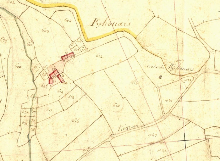 Extrait de la feuille A2 du cadastre ancien de la commune de Trégrom, 1834 : KerhouarsImmatriculation