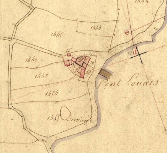 Extrait de la feuille D3 du cadastre ancien de la commune de Trégrom, 1834 : ferme de Pont LouarsImmatriculation