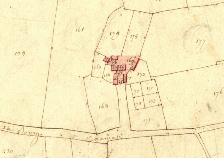 Extrait de la feuille C1 du cadastre ancien de la commune de Trégrom, 1834 : le manoir KernamanImmatriculation