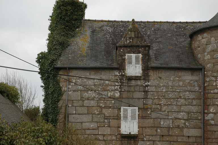 Elévation antérieure orientée vers l´ouest-nord-ouest : détail des ouvertures nord, baie rectangulaire à appui mouluré saillant et linteau en accolade et lucarne à fronton-pignon triangulaireImmatriculation