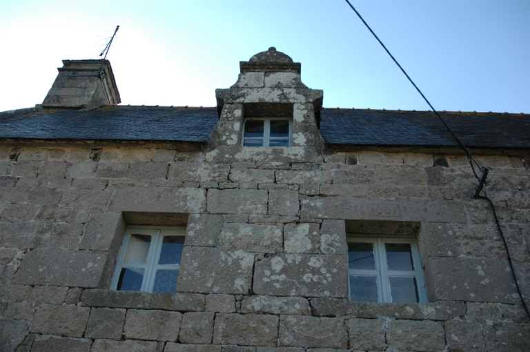 Vue de l'élévation antérieure orientée vers l'est : détails des fenêtres et de la lucarneImmatriculation