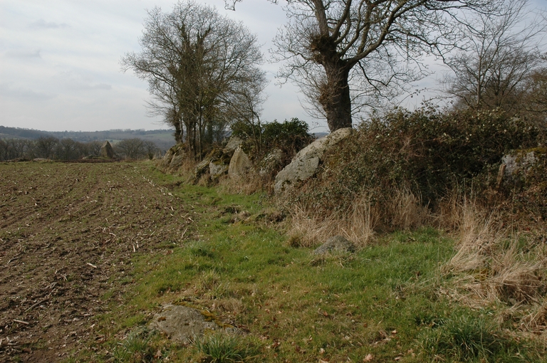 Alignement de pierres faisant talus et menhir sud (en arrière plan)Immatriculation