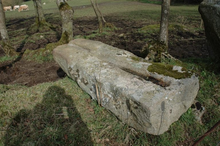 Talus situé entre les fermes et le menhir sud, bloc de granite en cours de débit ?Immatriculation