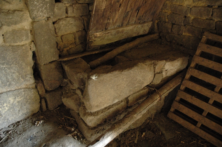 Logis puis étable, vue intérieure, auge de forme rectangulaire servant de mangeoireImmatriculation