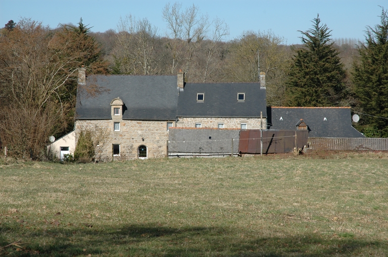 Vue générale depuis le sud : alignement de deux logis, l´un - à l'est - est datable du 17e siècle mais a été remanié ; le second - à l'ouest - est daté par millésime de "1724"Immatriculation