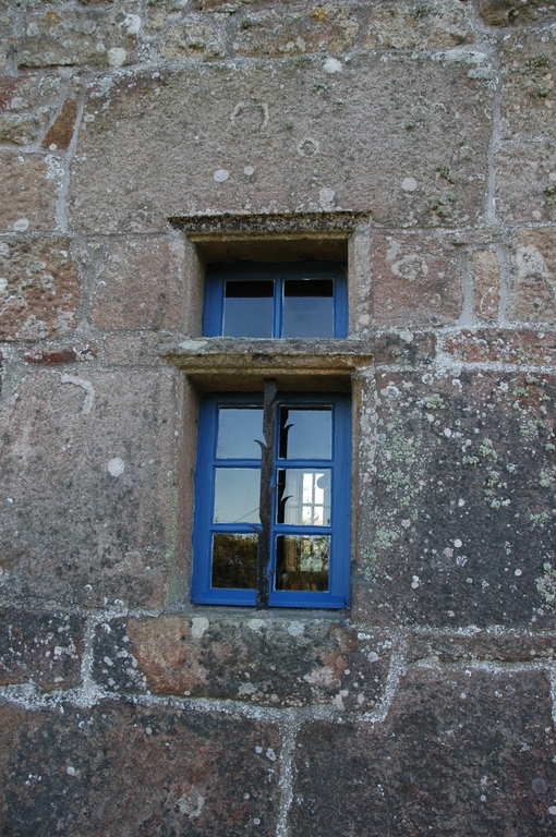 Vue de l'élévation postérieure orientée vers le nord, rez-de-chaussée : détail d'une baie à traverseImmatriculation