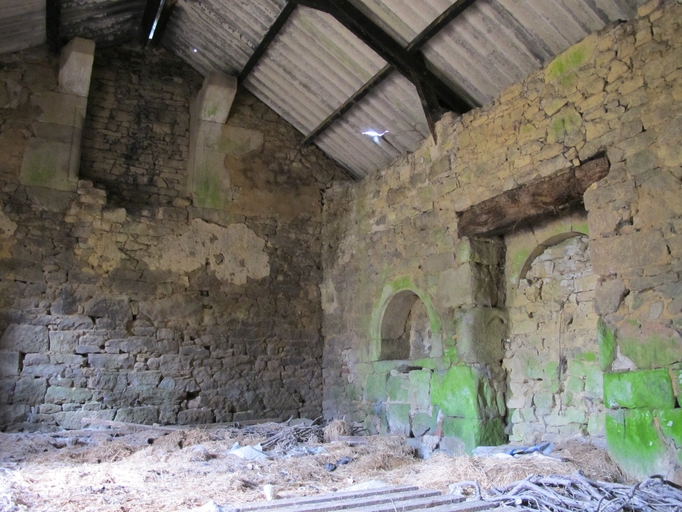 Ferme puis étable, vue intérieure, porte en arc plein cintre nord, saloir et pierre à saler mural et cheminée de l'étageImmatriculation