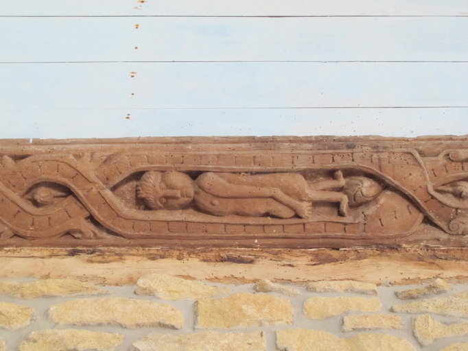 Plougras, le bourg : chapelle Saint-Gonéry, sablière sculptéeImmatriculation
