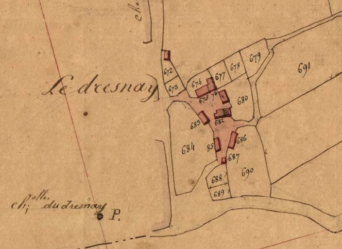 Extrait du cadastre ancien de la commune de Loguivy-Plougras, 1834 : le DresnayImmatriculation