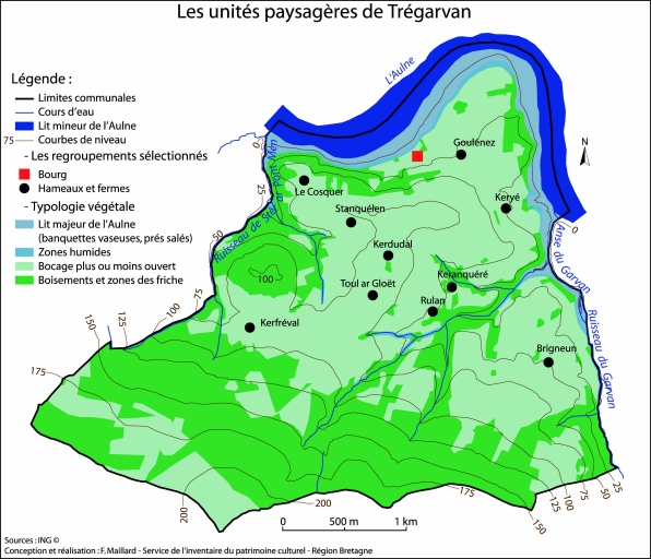 Les maisons, fermes et hameaux sur la commune de Trégarvan,