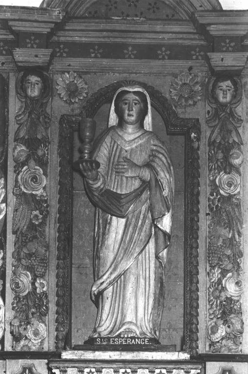 Statue (petite nature, d'applique) : sainte femme, dite sainte Espérance, chapelle Sanspe dite chapelle Sainte-Espérance (Beuzec-Cap-Sizun),