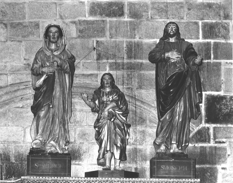 Groupe sculpté (d'applique) : Vierge, saint Joseph, saint Gabriel, église paroissiale Notre-Dame-de-Roscudon (Pont-Croix),