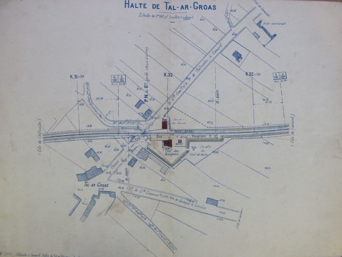 Plan de situation de la halte de Tal ar Groas, dressé le 12 juin 1910 par l'ingénieur V. Adam (A. D. du Finistère, 5 S 79)Immatriculation