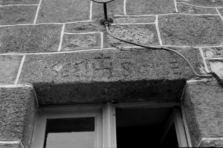 Le Breil Renard, ferme, le linteau de la porte.Immatriculation