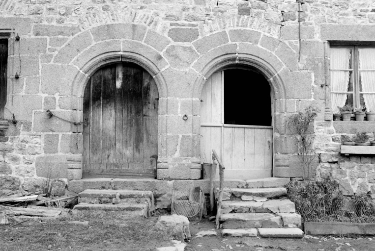 Portes en plein cintre géminées.Immatriculation