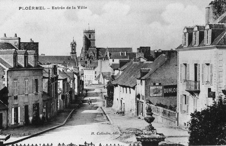 PLOËRMEL. - Entrée de la ville. Carte postale, A. Houal, phot., Ploërmel : H. Calindre, édit., 1er quart 20e siècle.