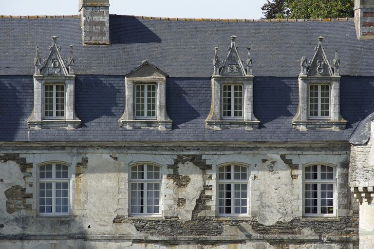 Château, logis, élévation sud : les niveaux supérieurs (état en 2010)Immatriculation