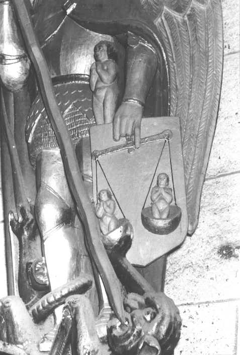 Statue (petite nature, d'applique) : saint Michel terrassant le dragon, église paroissiale Saint-Pierre-Saint-Paul (Lignol),