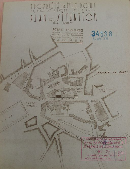 Plan de situation de l'immeuble Le Port par R. Lamourec, 1959. AM Vannes 35 W.Immatriculation