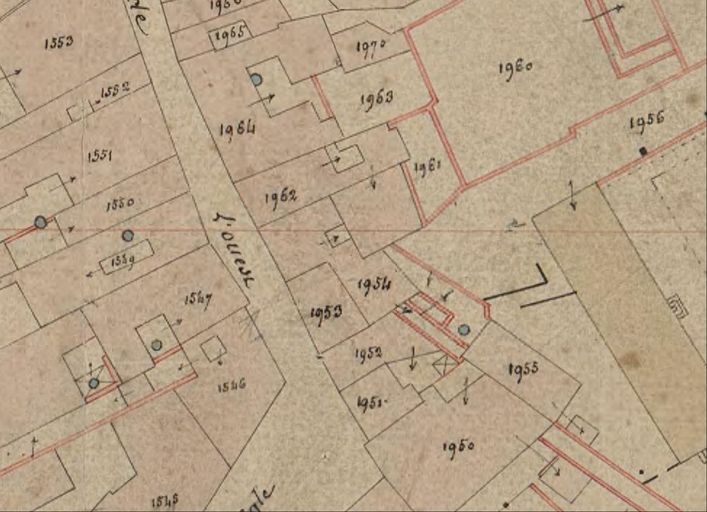 Plan cadastral de 1844 : section K8, détail, rue Saint-Salomon, parcelle 1954. AD Morbihan 3P 297/53.Immatriculation
